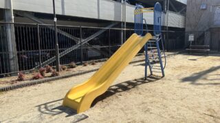 あちらは三角形の敷地になっていて、最初に紹介した滑り台とブランコゾーンです。
