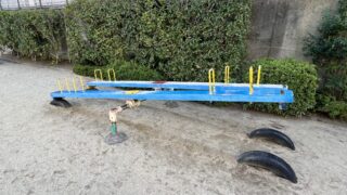 道路を挟んで遊具が分かれて設置されています。